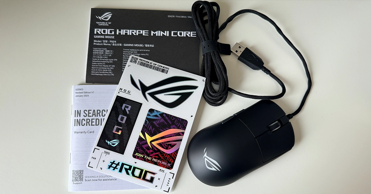 ROG Harpe Mini Core to przewodowa, ultralekka (ok. 52 g) mysz dla graczy, którzy stawiają na kontrolę i powtarzalność. ASUS bierze sprawdzony, “pro-approved” kształt Harpe Ace Mini, zdejmuje z niego zbędne gadżety i zostawia to, co najważniejsze w FPS-ach: ergonomię pod claw/fingertip, sensowny sensor 12 000 DPI, miękki przewód i ślizgacze z czystego PTFE. ROG Harpe Mini Core to myszka dla tych, którzy lubią szybko, lekko i bez kombinacji. Po kilku meczach czuć, że to sprzęt zrobiony pod kontrolę i powtarzalność ruchów.