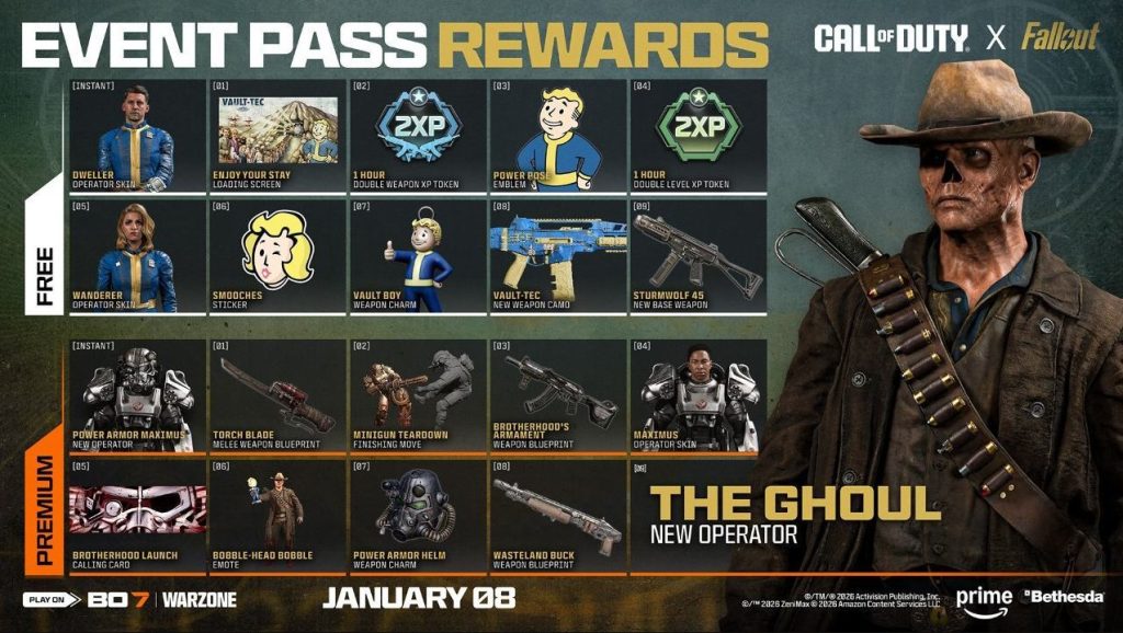 8 stycznia 2026 roku, zadebiutowała aktualizacja Sezonu 1 Reloaded w Call of Duty: Black Ops 7 oraz Warzone. Największą atrakcją środka sezonu jest spektakularne wydarzenie zrealizowane we współpracy z Amazon Prime Video, które przenosi świat serialowego Fallouta bezpośrednio na pola bitew popularnej strzelanki.