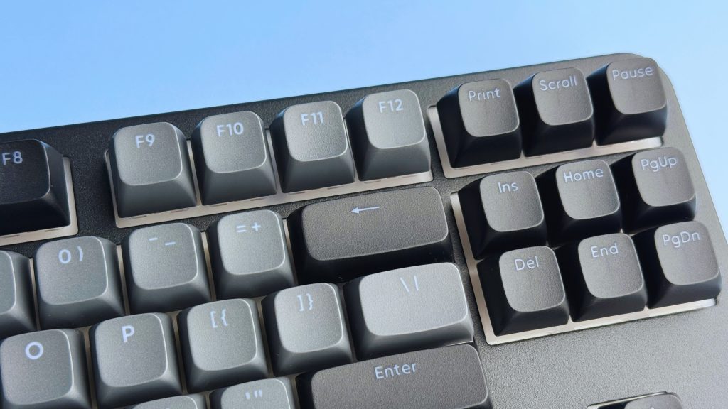 Druga kwestia to gasket-mount i elastyczność konstrukcji. Przy normalnym, spokojnym pisaniu ugięcie jest subtelne, ale jeśli masz tendencję do mocniejszego dociśnięcia klawiszy, wyczujesz, że środek konstrukcji reaguje i jest to zamierzony efekt, a nie wada. Dla wielu osób będzie to właśnie powód, dla którego klawiatura wydaje się bardziej komfortowa, ale jeśli wolisz sztywne klawiatury, możesz uznać ten efekt za zbyt miękki.