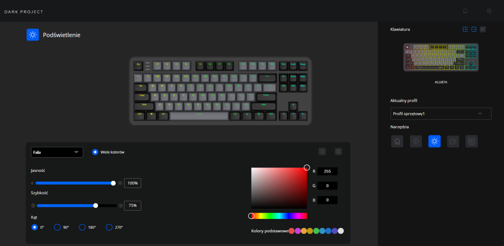 Z poziomu klawiatury można przełączać się między wieloma efektami i regulować jasność, a precyzyjne ustawienia dostępne są w oprogramowaniu.