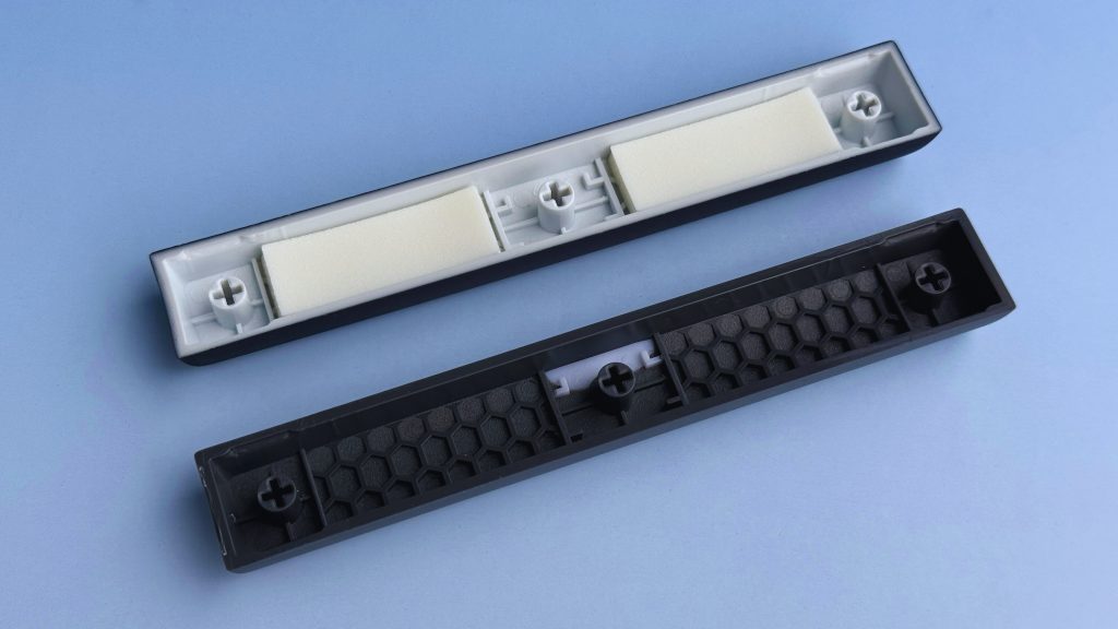 Ciekawostką jest to, że duże klawisze brzmią odrobinę inaczej niż reszta. Ale nie tak jak zazwyczaj głośno i pusto tylko ciszej, bardziej matowo. Wynika to z połączenia smarowania, wyciszenia i a przypadku spacji jeszcze dodatkowego wypełnienia pianką pod nakładką. Dla większości użytkowników będzie to odczuwalne jako zaleta, bo spacja nie dominuje dźwiękowo całej klawiatury, ale jeśli lubisz idealnie równy, jednorodny ton na wszystkich klawiszach, różnica może zwrócić Twoją uwagę.
