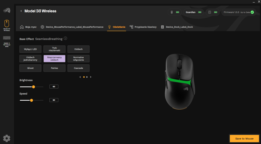 Najważniejszy plus to brak rozłączenia w trakcie zmiany baterii. Mysz nie gaśnie, nie szuka dongla i nie traci pary. Tryb Guardian utrzymuje funkcjonalność myszki na czas wymiany. Nie musimy być najsprawniejszymi manualnie osobami, żeby przeprowadzić całą akcję sprawnie i szybko. Taka implementacja wymiennych baterii ma wreszcie sens. Nie trzeba przewidywać ładowania na noc. Rotacja akumulatorów załatwia temat.