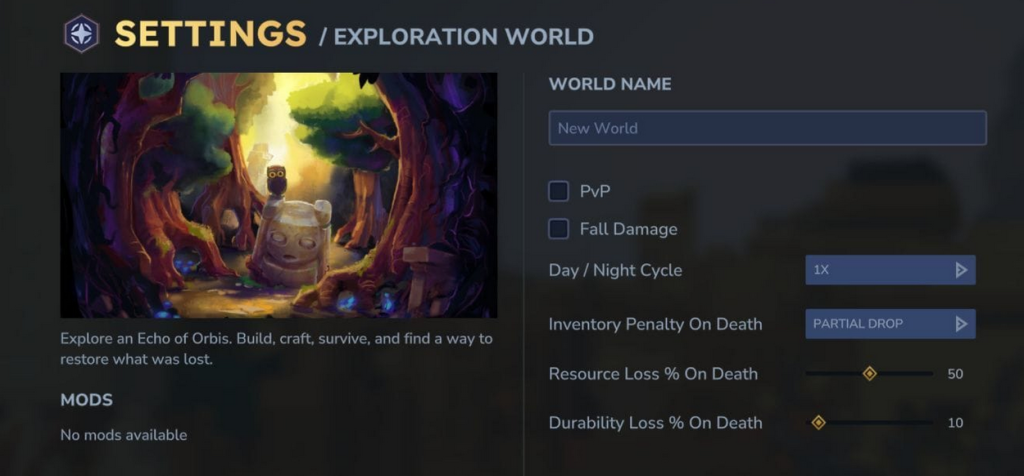W menu Settings możesz spersonalizować zasady panujące w Twoim świecie: