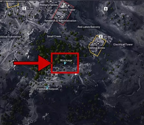 Twoim celem jest strefa Wreckage, położona w południowo-wschodniej części Dam Battlegrounds (na wzgórzach Formicai Hills, na północny wschód od Scrapyard).