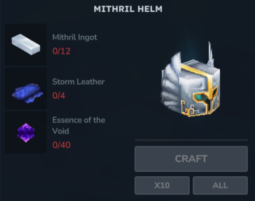 - Narzędzia Mithrilowe: Wymagają sztabek Mithrilu i Skóry Burzowej (Storm Leather).