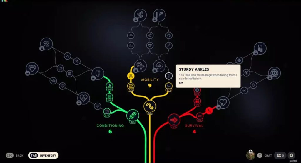 Innym sposobem na zmniejszenie obrażeń jest inwestycja w umiejętność Sturdy Ankles (Wytrzymałe Kostki) w drzewku Mobilności (Mobility).