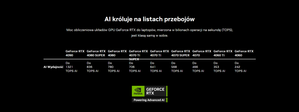 Wydajność w liczbach mówi sama za siebie – w porównaniu do zestawu bez dedykowanego układu GPU, platforma RTX AI PC oferuje: