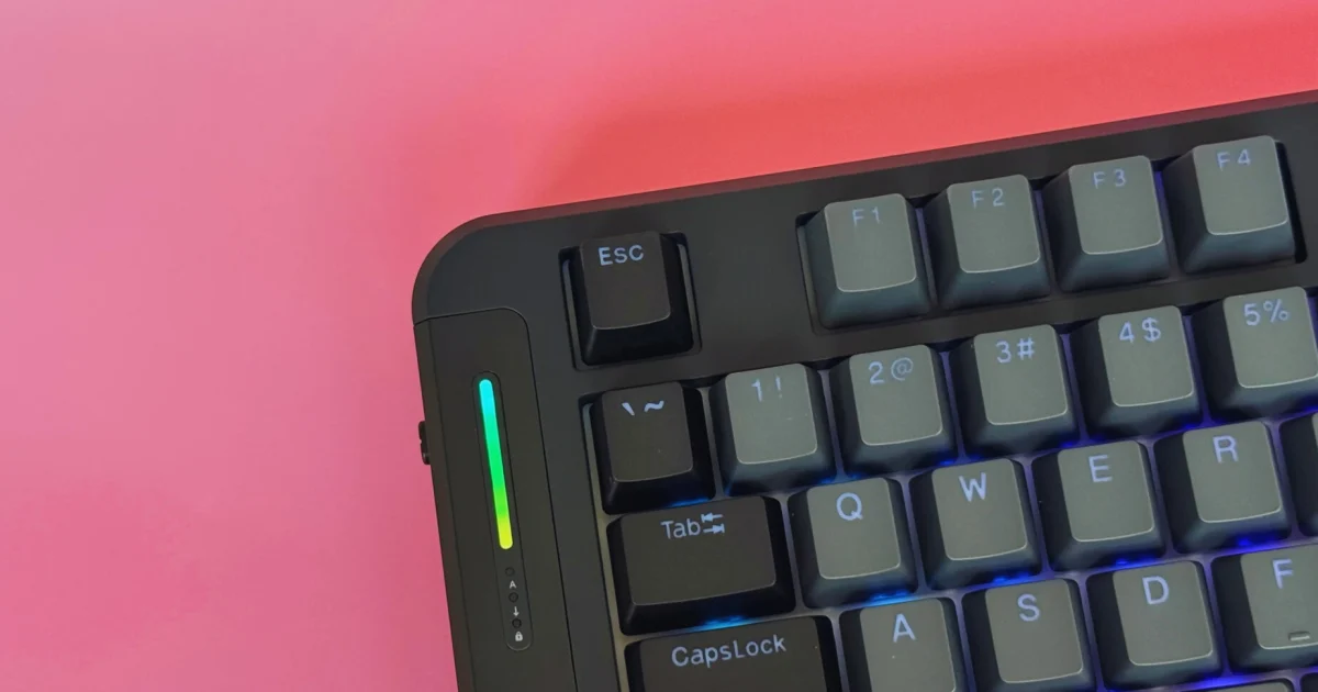 Jedyny zarzut dotyczący baterii, który to brak wskaźnika poziomu naładowania podczas ładowania. Kiedy podłączysz kabel USB-C, klawiatura nie pokazuje procentowego stanu baterii – trzeba odłączyć kabel, żeby sprawdzić poziom. To dziwne przeoczenie, które łatwo byłoby naprawić aktualizacją firmware’u, ale na razie pozostaje drobną niedogodnością.