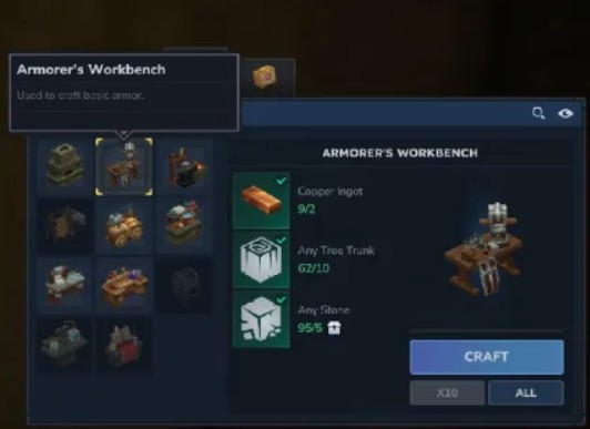 Zanim zaczniesz wykuwać potężne zestawy, musisz posiadać Warsztat Płatnerza. Podobnie jak w przypadku innych rzemiosł, bardziej zaawansowane zestawy (wyższe tiery) będą wymagać ulepszenia warsztatu do poziomu drugiego lub trzeciego.