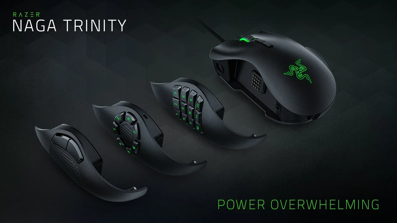 Razer Naga Trinity to mysz wielozadaniowa, która została stworzona zarówno dla graczy FPS, MMO oraz MOBA. W jaki sposób uzyskała ona jednakże miano tak wszechstronnego sprzętu? To proste! Kryją się za tym 3 wymienne panele boczne z przyciskami, które w mgnieniu oka potrafią zmienić możliwości Naga Trinity: