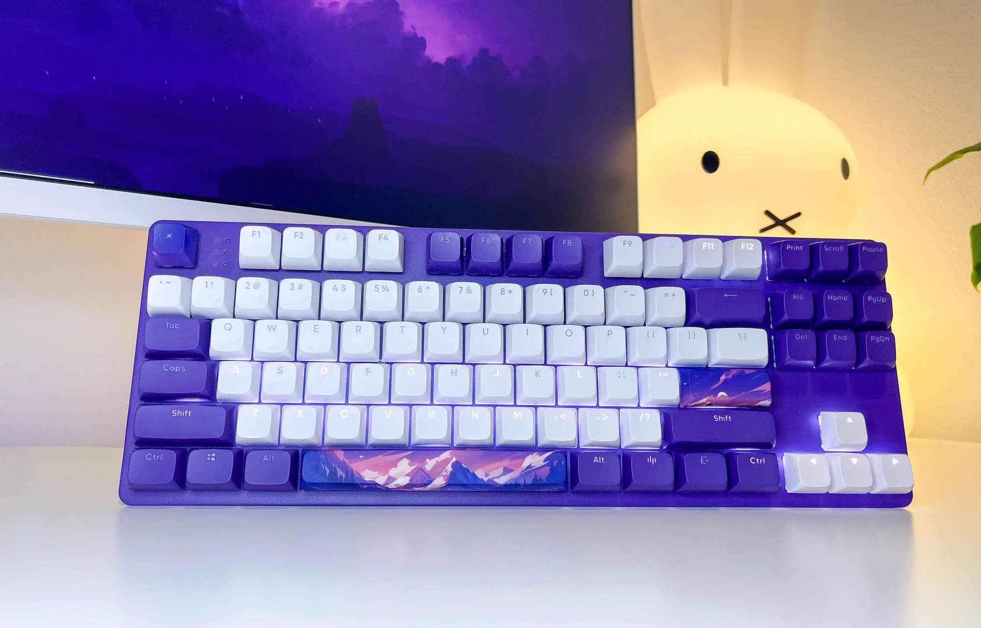 Dobra, przejdźmy do tego, co od razu przyciąga wzrok – wygląd. DPO87 Violet Horizons w kolorach fioletu i bieli to coś, co od razu wyróżnia się na tle nudnych, czarnych klawiatur. Nie jest krzykliwa, ale subtelnie daje znać: „Patrz na mnie, jestem inna i całkiem piękna.” Może nie każdy lubi odważne kolory, ale ja jestem na tak – ten fiolet jest naprawdę uroczy.