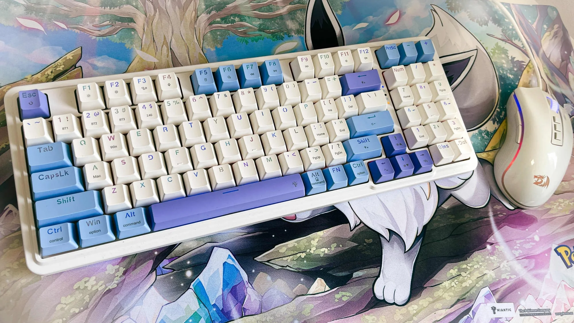 Klawiaturę zdobią keycapy wykonane w technice podwójnego wtrysku. Co według producenta ma zapewniać większą trwałość. Większość keycapów jest biała ale Redragon dodał nam 18 keycapów błękitnych jak dolna część obudowy oraz 7 fioletowych. Oba odcienie są delikatne, pudrowe, delikatniejsze niż na podglądowej fotce na opakowaniu. Chociaż jestem fanką białych akcesoriów ta kolorystyka dosłownie skradła moje serce. Nakładki w dotyku są bardzo przyjemne, zapowiadają się na naprawdę wytrzymałe. Szkoda, że producent nie pokusił się o doszlifowanie ich od dołu bo na niektórych widać lekkie ząbki.