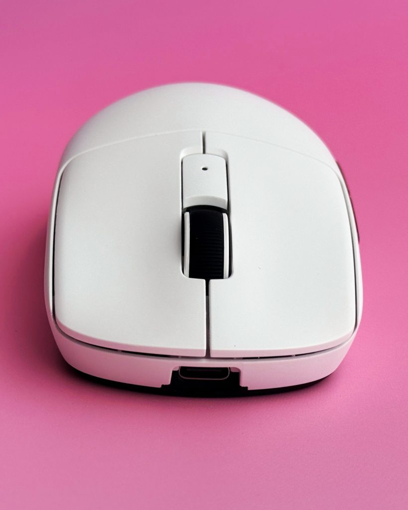 W środku pracuje bateria Li-Ion 500 mAh. W połączeniu z brakiem podświetlenia RGB oznacza to wyraźnie dłuższy czas pracy niż w modelach świecących całą tęczą. Gdy trzeba podładować myszkę, wystarczy sięgnąć po kabel, port USB-C z przodu obudowy umożliwia granie i ładowanie jednocześnie.