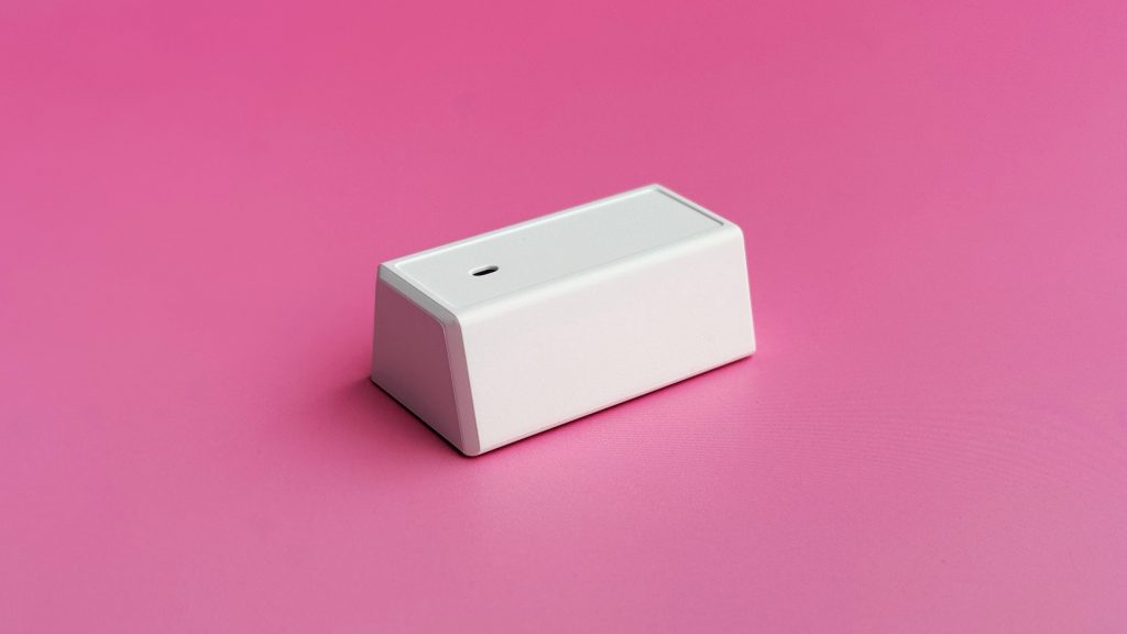 Nadajnik 2,4 GHz ma formę małego, białego modułu. Można wpiąć go bezpośrednio w port USB lub podłączyć do krótkiego kabla, kładąc bliżej podkładki, to minimalizuje potencjalne zakłócenia i zapewnia stabilny sygnał.