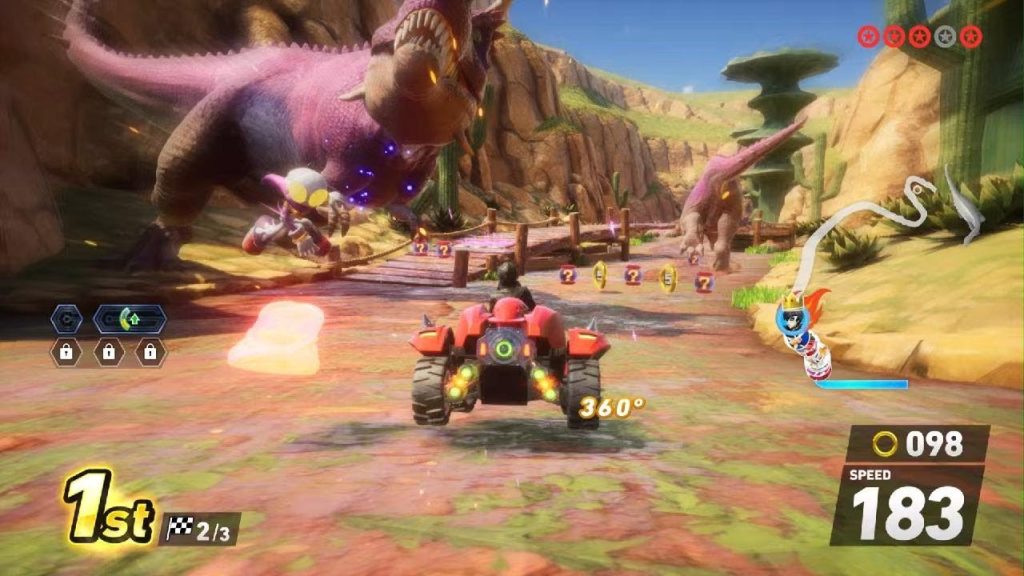 Tym razem postacie ścigają się we własnych pojazdach, zamiast biegać, co osobiście bardzo mi odpowiada w porównaniu do sterowania z Sonic R. Na 24 torach (i kolejnych, dostępnych w DLC) możesz używać różnorodnych broni inspirowanych poprzednimi grami z serii, a także „przenosić się” do zupełnie innych miejsc za pomocą portali Crossworld.